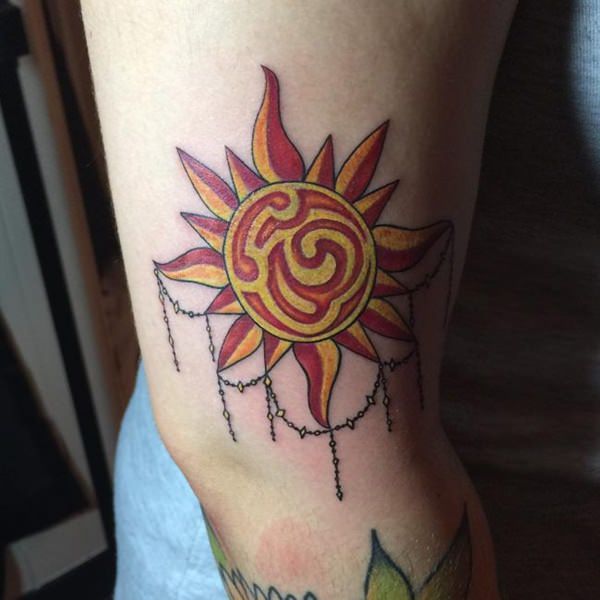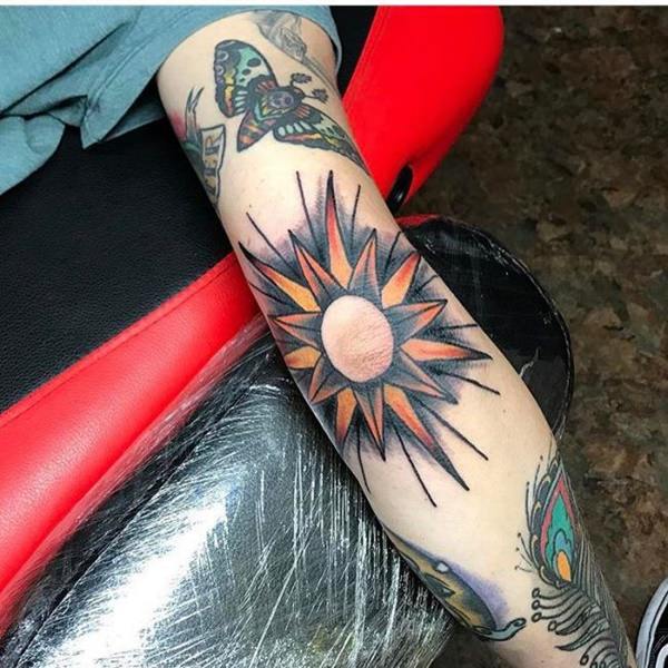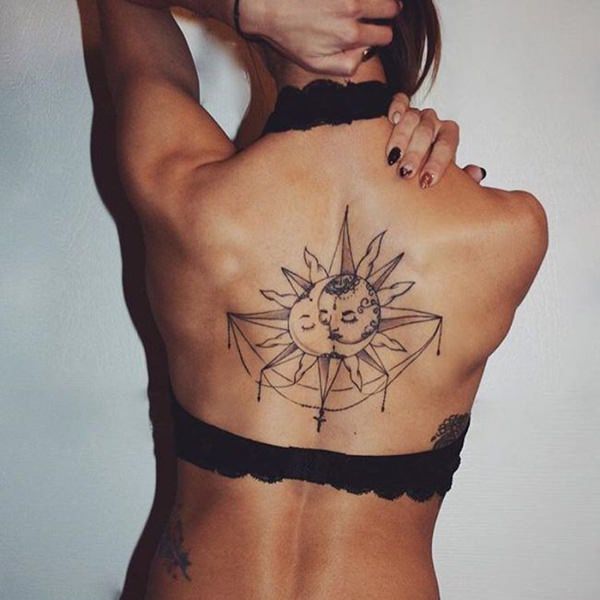Sun tattoos can be placed anywhere on your body. For women, it would be sexier to put it at the back of your neck. This will be perfect for women with who love to tie their hair into messy buns. The sun tattoo will accentuate your backbone, which will make you look hotter than ever.