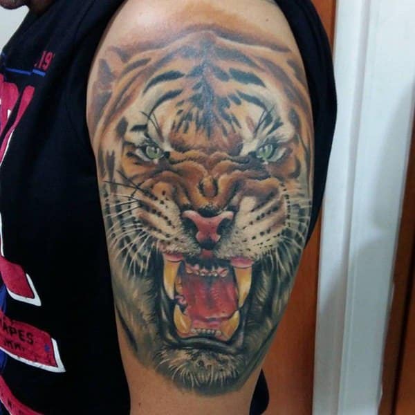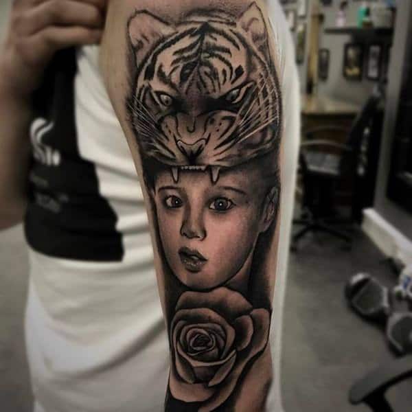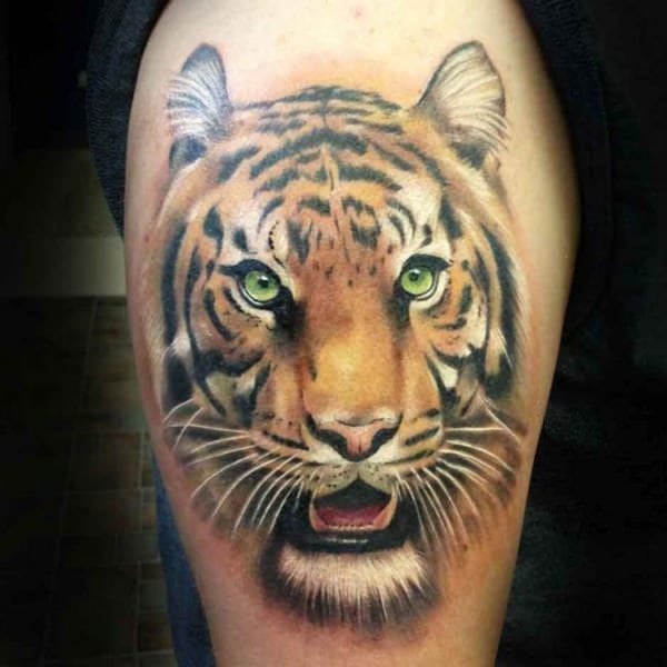 The extraordinary shading and contouring in this tattoo bring out the realism in it. Realism needs to show in this tattoo as it adds to the beautiful and strong meaning the tiger tattoo holds. Hence, if you plan on getting this tattoo, make sure you get it done from an experienced tattoo artist.
