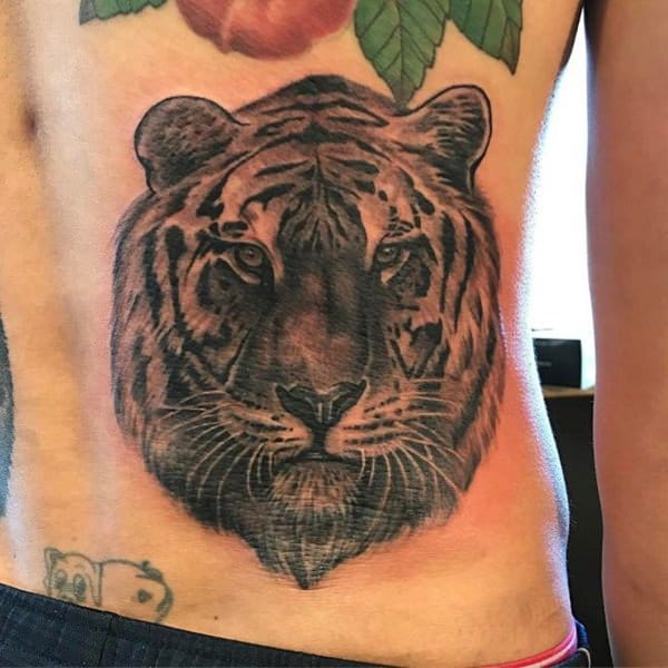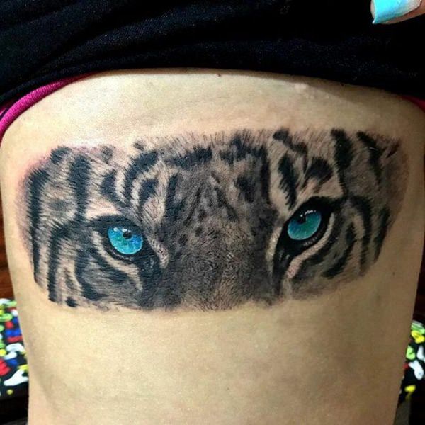 The shading in this tattoo is marvelous and helps bring out the realism in it. This tattoo symbolizes the darker meaning associated with tiger tattoos, which is revenge and fierceness. You could slay this tattoo by getting the whole tiger tatted on your back, stomach, or thigh.