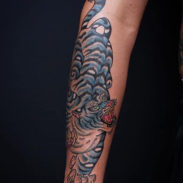This tattoo has a deep connection with Chinese mythology as it associates with the Taoist religion, which considers this tiger the God of wealth. Many Chinese get this tattoo to symbolize their highest military position. Some people also associate this tattoo with independence, bravery, and confidence. You could perfectly slay this tattoo on your thigh or back.