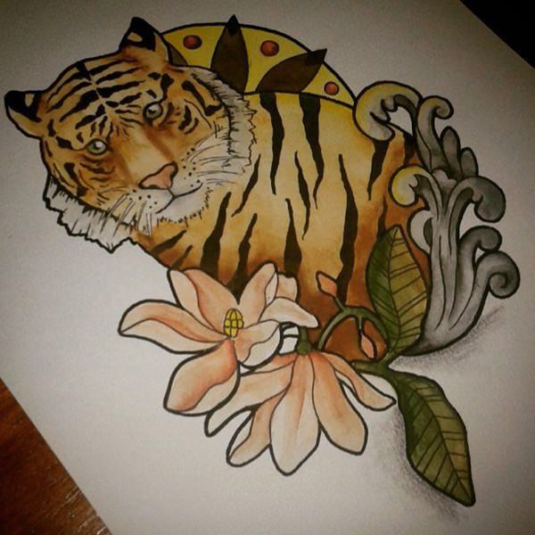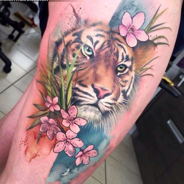 Tiger with Flowers Tattoo