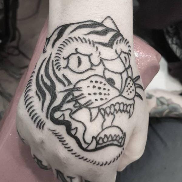 This tiger face finger tattoo is the ideal choice for you if you are searching for a minimal tiger tattoo. This tattoo may look very simple and subtle, but it’s unique because of its placement. This tattoo includes a small black and grey inked tiger’s face tatted on the middle finger. There are also small hints of orangish ink to bring out a bit of realistic touch in this tattoo.