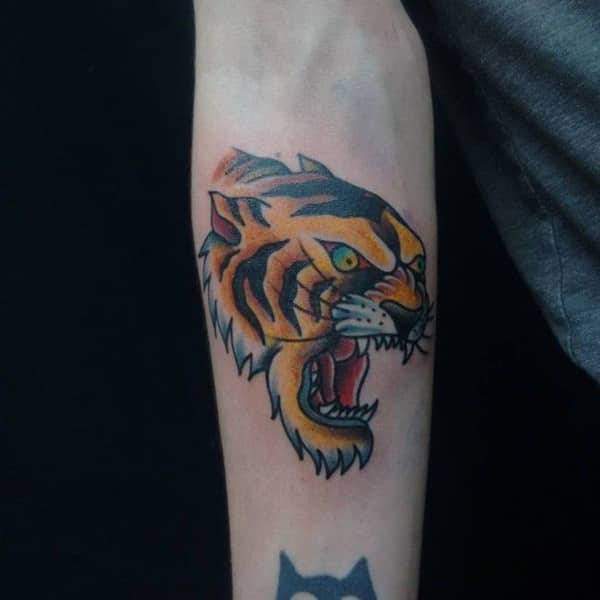 With so much variety in tiger tattoos, you can choose to place your trigger tattoo anywhere you like. Your tattoo looks much better when you get it tatted on the right place, especially when the shape fits that particular body area. If you’re going for a small or medium-sized tiger tattoo that just includes the face of a tiger or a small body, you can choose to get it tatted on your arm, elbow, hand, and back. Some people also get mini tiger faces tatted on their fingers.