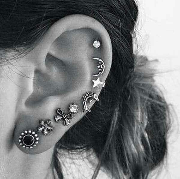 It does look like clutter or in exact words a complete fuss on the ear, which is an effect not everyone can think of pursuing. Not to mention, you have to be quite daring to have your entire cartilage bone pierced.