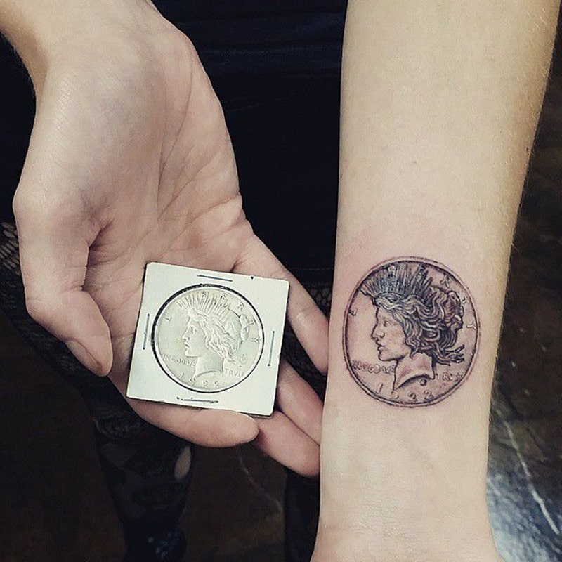 Coins are a trendy and popular type of money tattoo that people around the globe have been popularly getting. This tattoo includes one or two coins of any era and includes a lot of black shading. You can choose to write something meaningful in the coin or your name or goal. People get these tattoos to cherish and remind themselves about the major historical movements. Coins were of excellent quality in the early years, so this tattoo also showcases the wealthier side of you and reminds you to always stay happy in order to inherit lots of wealth. The perfect placement for this tattoo would be on your arm or near your collar bone. You can adjust the size of the coin according to your preference. However, big coins always look good in tattoos.