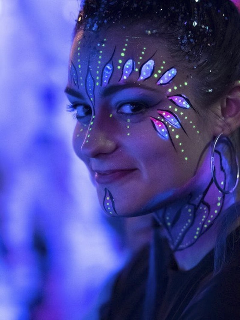Sure, a UV eagle may look superb, but then they would do so on any part of your body. You don’t have to use your face if you are just going for a simple image. What looks best on the face are patterns and designs. These, depending on their construction, can be very expressive. A pattern with sharp edges and dark colors could mean an adamant and violent character. Smooth curves and lighter colors, in contrast, portray gentleness.