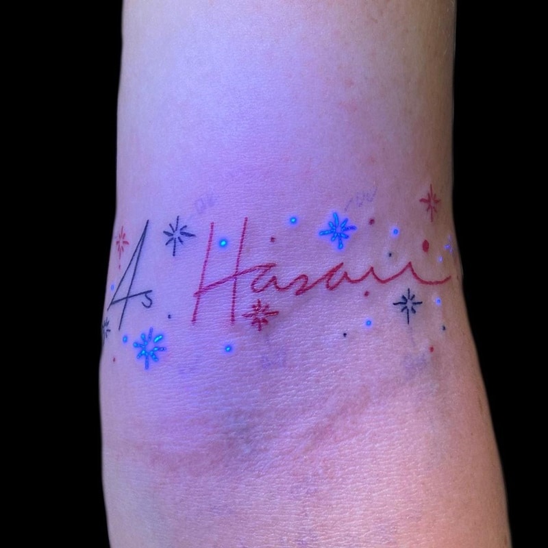 You don’t necessarily have to get a complex design in order to bring out the beauty of UV tattoo’s=. Be creative and get amazing “letter” tattoos from UV ink.