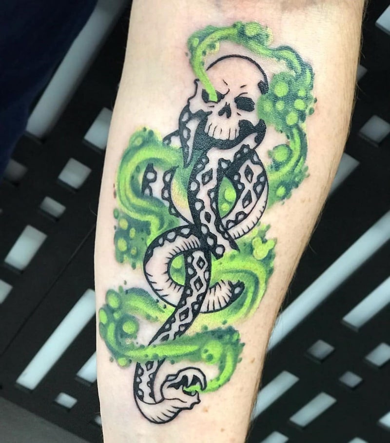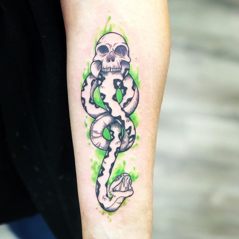 This tattoo is all about giving that extra flare to an already awesome tattoo. Some people just like to keep it simple. A simple power button on the neck or hand is more than enough for them. Others go all out, such as an enormous cobra with eyes filled in with red UV ink or a Phoenix whose wings radiate yellow under a black light.