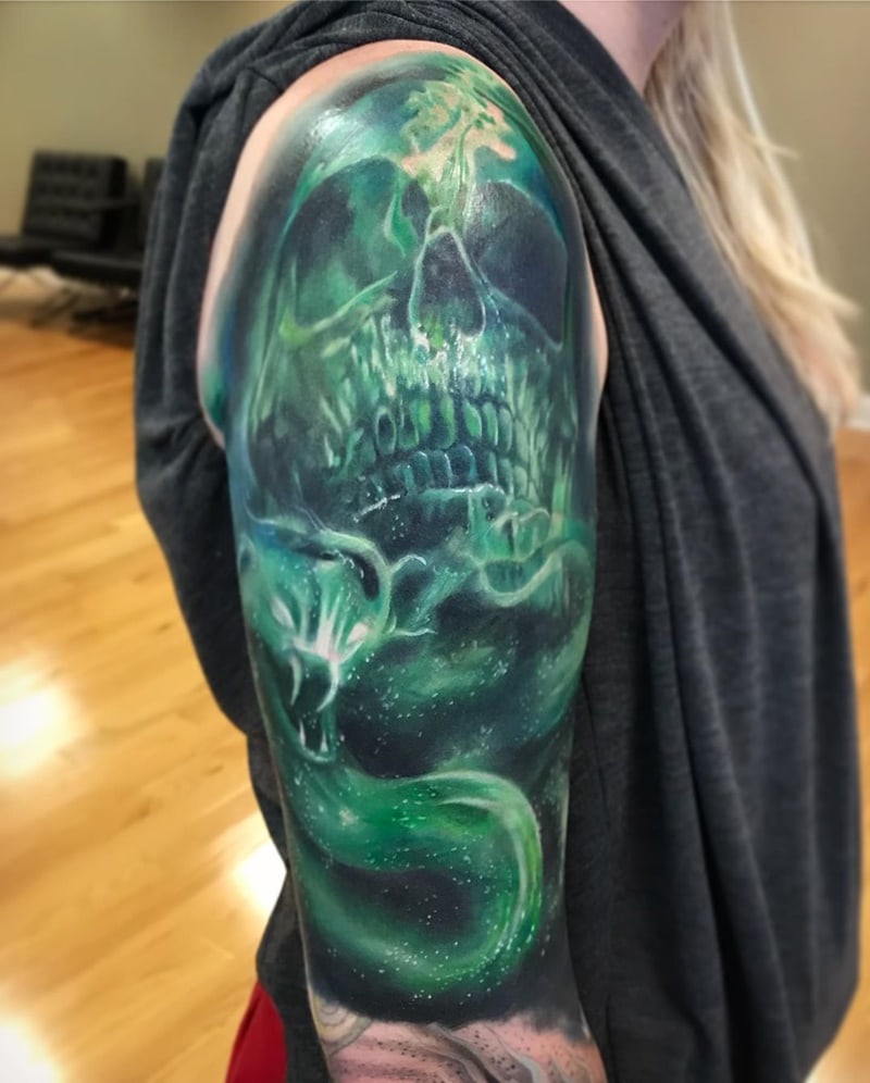 Despite the change in aesthetic, clowns still maintain their popularity. Tattoos of menacing clowns have seen a rise in popularity. People have made use of UV to give these clowns an even more maniacal feel. If you want to scare others with your body tag, these clown tattoos are right for you.